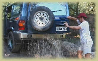 Tambien se ve la foto los restos de barro en la entrada de aire de la "cacerola" que contiene al elemento filtrante de aire; seguaremente de alguno que otro vadeo realizado sin snorkel (que cerca estuvimos...).8) Una vez cumplido todo esto, se aseguran las uniones de las mangueras con abrazaderas y gomas autovulcanizables; y fastix para sellar todo el resto. Se atornilla la parte mas alta del snorkel al parante; para darle rigidez y listo. El producto terminado queda muy bien.