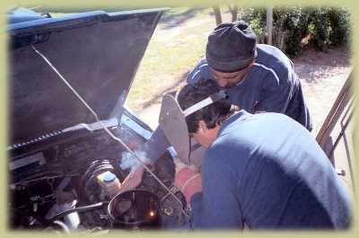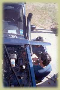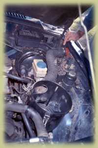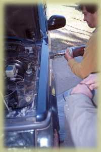 3) Luego se hacen los cinco agujeros de los tornillos que sujetan el cuerpo del snorkel. Por cierto, que el snorkel queda muy bien asegurado a la carroceria.4) Una vez que se hizo el primer agujero al guadabarros (ojo que hay dos chapas de guardabarro), tuvimos que tomar la primera decision: O pasabamos por entre ambas chapas del guardabarro el conducto de aire hacia la toma del del filtro de aire que esta en la parte delantera izquierda del motor; o bien pasabamos directamente hacia adentro del compartimiento del motor y buscabamos como hacer para llegar hasta el filtro de aire. La primer opcion nos obligaba a hacer dos curvas de 90º dentro de ambas chapas del guardabarros. Descartamos esta opcion, por que las curvas de 90º ademas de generar turbulencias no recomendables en el flujo de aire; hace que las mangueras se quiebren a la larga; con la consecuencia nefasta que ello implica. Ademas la manguera al quedar oculta entre ambas chapas del guadabarros, nos impedia controlar su estado.Optamos por entrar directamente al compartimiento del motor.5) Ello implicaba, hacer otro augujero a la segunda chapa, bastante mas dura que la primera; sumado el hecho de unos nervios que venian del soporte de la bisagra del capot.