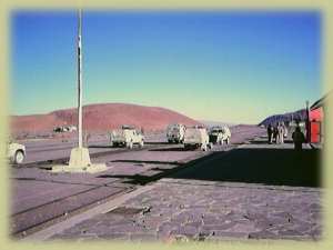 Luego de los tramites aduaneros, partimos con rumbo a San Pedro de Atacama, pasamos por zonas de campos minados, realmente ponía la piel de gallina, ver los carteles que indicaban ¨ PELIGRO EXPLOSIVOS ¨, que allí estaban dispersos desde el año 1978, impresionante fue ver un Land Rover serie a unos 40 metros al costado del camino, totalmente despedazado, nos comentaron que fueron unos arqueólogos que tuvieron la mala fortuna de pisar una mina.