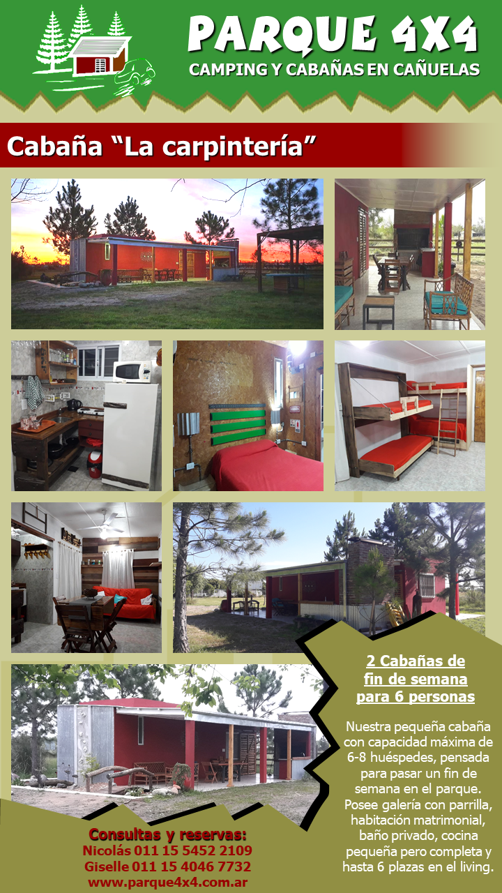 ambientes según la cabaña. Estacionamiento