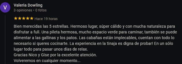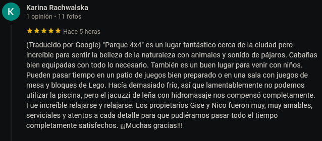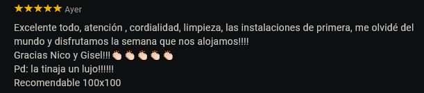 exclusivo por turnos, para las 4 cabañas.