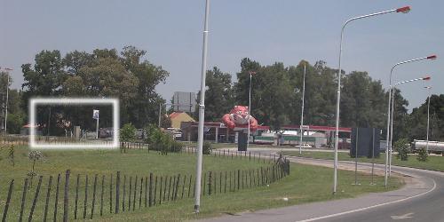 menos de 10m a la izquierda de la ruta, entre la fábrica