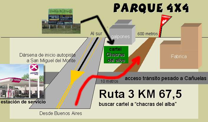 y los galpones, tomar el camino de tierra hacia el Parque4x4.