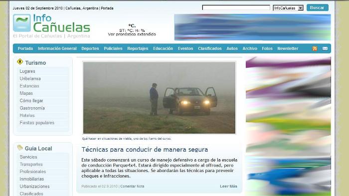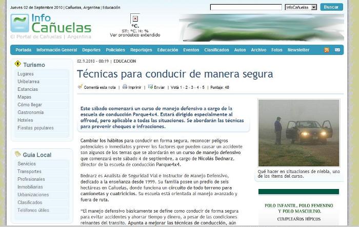 el sitio web INFOCAÑUELAS, promocionando los cursos de manejo
