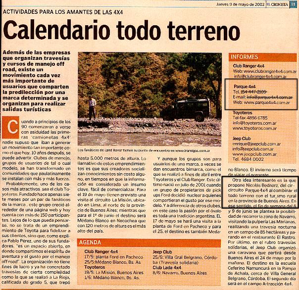 Cronista, "Calendario Todo Terreno", Mayo 2002