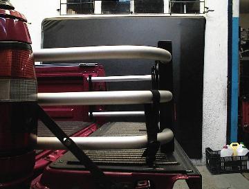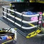 - Posee una doble utilidad, cuando está con el portón cerrado sirve como contenedor de artículos pequeños (latas, compras de supermercado, bidones, etc., etc.) evitando que se desplacen con las irregularidades del camino y las frenadas bruscas.