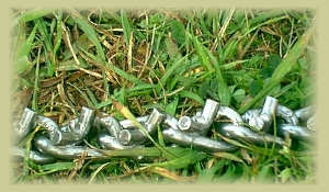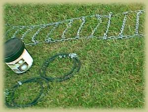 Las medidas de las cadenas van de acuerdo al tamaño de los neumáticos. Por ejemplo, para la Ranger, usamos un par número 9, que puede utilizarse para neumáticos de 225 x 15 ó 235 x 15. El peso de estas cadenas con púas es de 15 kg.