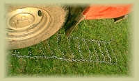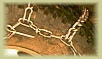 Extender las cadenas en el piso, formando una escalera. Controlar que no haya galletas, que las púas estén hacia el piso, y que los ganchos estén en el lado correcto: el gancho grande hacia afuera y el pequeño hacia el interior del vehículo. |