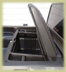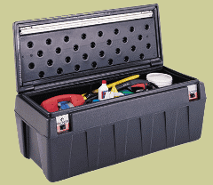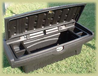 Es increíble el espacio que hay, podemos llevar: La eslinga, una caja de herramientas, las cadenas de nueve, mangueras, sogas, un hacha, un bidón de combustible, un bidón de agua, un cricket y un par de botas y todavía había lugar de sobra para guardar más cosas...Las pickup, cabina simple o doble cabina no se caracterizan por tener un muy buen espacio dentro de la cabina. Entonces, uno de estos cajones pueden ser la solución si siempre viajamos muchos y con algo de equipaje. Puede usarse como contenedor permanente, ya que cuenta con una cerradura con llave, y es muy fácil fijarlo al piso de la caja. Su apertura es hacia arriba, con una cadena para asegurar la tapa.
