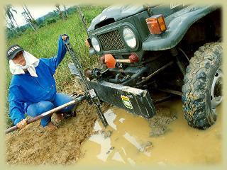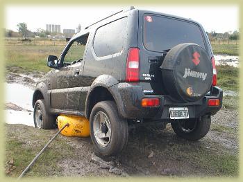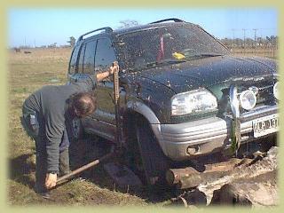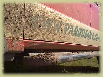 Si no tenemos rocksiders, deberemos buscar puntos en el chasis para levantar el vehiculo, con lo cual las maniobras de rescate se complican aún más todavia. Estas fotos fueron tomadas en el circuito de introducción de todo terreno de Parque4x4.