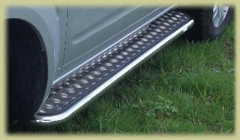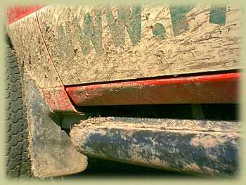 El zocalo de la camioneta se ha hundido hacia adentro de tantas colgadas y golpes...Su otra función principal es brindar un punto de apoyo fácil de utilizar para el hi-lift, en caso de tener que levantar la camioneta de costado. Esto se logra con una forma de escalón característica, de donde se puede sujetar bien el gancho del hi-lift, en cualquier posición del lateral de la camioneta. Al utilizar el hi lift, el rocksider lo separa unos cm de la puerta, evitando golpes y abolladuras, y facilitando el rescate. Tambien sirve para utilizar el gato inflable.